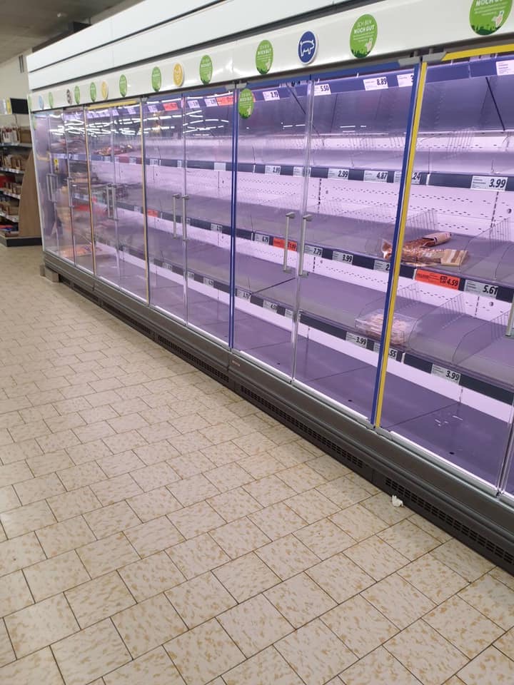 이미 학교와 유치원은 문을 열지 않고 있었고, 대부분의 회사들도 자체적으로 홈오피스를 시행하고 있었습니다. 가족이나 친구, 동료를 만나도 포옹이나 악수는 절제하고 떨어져서 터치 없이 안부를 묻습니다. '사회적 거리 두기'처럼 대외적인 규칙은 철저하게 지키고 있는데요. 이렇게 겉으로는 침착하게 대응하는 듯한 독일이지만, 얼마 전 마트에 갔었을 때는, 화장실 휴지와 스파게티, 계란 등이 모두 매대에 텅텅 비어있어서 굉장히 당황했었습니다. 메르켈 총리의 사재기는 불안감만 증폭시킬 뿐이며 이미 창고에 충분한 양의 식량과 생활용품이 있으니 안심하라는 이전 담화문 발표 ( 2020년 3월 18일 수요일 ) 이후 그래도 눈에 띄게 매대에 상품들이 채워진 모양새였습니다. 그럼에도 평상시보다는 물량이 반절 정도밖에 남아있지 않았죠. 사실 독일 내에서도 사재기를 하는 사람들을 몰상식하고 배려가 없다며 욕을 하는 분위기입니다. 트위터나 페이스북등 각종 SNS엔 사재기를 하는 사람들을 조롱을 하는 유머글이나 유튜브 영상들이 넘쳐납니다.