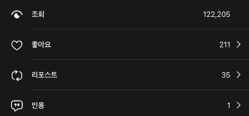 다른 SNS 플랫폼보다 노출도가 굉장히 높고, 팔로워도 금방 쌓이는 것 같아요. 주제를 명확하게 했던 인스타그램 팔로워도 100명까지는 금방 늘었지만, 그 이상을 높이기는 어려웠고, 요즘의 인스타그램은 검색에 제한이 생기면서 더 늘리기 어려워진 부분이 있습니다. 그에 반해 스레드는 이미지보다는 텍스트 위주로 콘텐츠가 쌓여 있고, 사용자가 아직 많지 않아서 최근 글이 검색어에만 맞다면 최상단에 뜰 확률도 굉장히 높은 것 같았어요. 추가로 알고리즘에 잘 맞으면 인기가 많은 글은 1만 회~10만 회 조회수를 훌쩍 넘기기도 합니다.